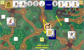 The prowling monster roll is 1: dragons. As previously mentioned, we are safe from prowling monsters while in the valleys so we are unaffected by this roll.